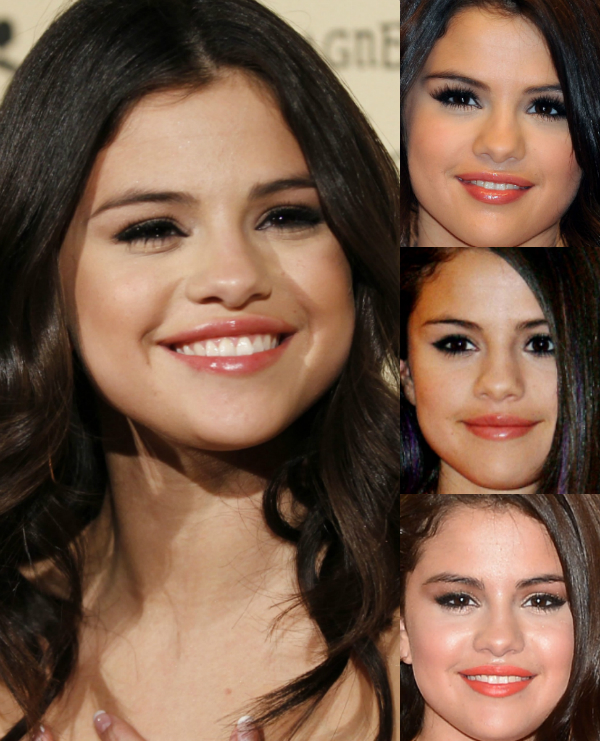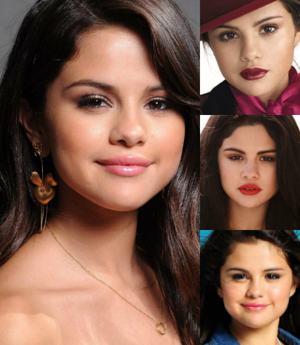 Selena Gomez gosta de um look mais natural, então é comum vê-la usando um batom nude ou gloss incolor. Em alguns eventos, a cantora aposta em batons tons de rosa (que combina super com ela) e sombras coloridas (como a azul). Vale também abusar do rímel ou cílios postiços.