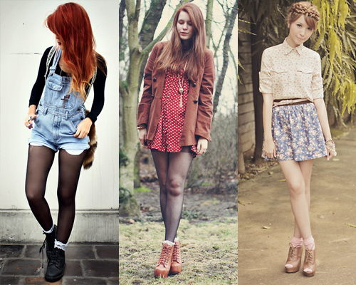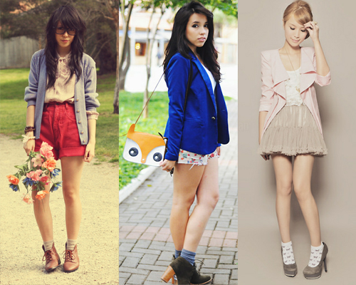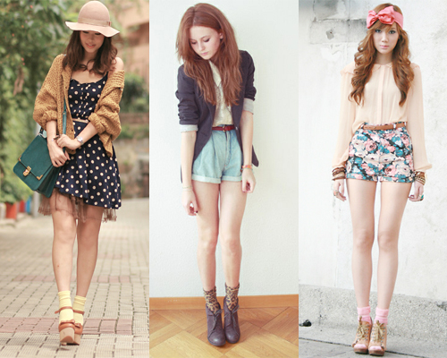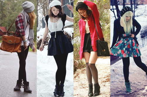 Claro que para nós, brasileiras e desacostumadas com esse tipo de look, fica meio difícil deixar as meias para fora. Nunca curti deixá-las aparecendo, então sempre comprava as soquetes. Porém, vendo as combinações feitas pelas it girls acima, até estou começando a mudar de ideia. Além de ficar diferente, ainda protege do frio.